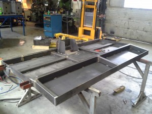 Nieuw achterschot landbouwkipper Na schade aan de landbouwkipper, hebben wij voor een lokale akkerbouwer, volgens model, een compleet nieuw achterschot gemaakt. Hierna is het geheel fraai in kleur gespoten.